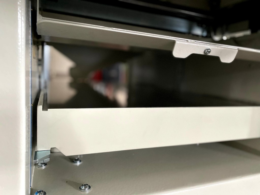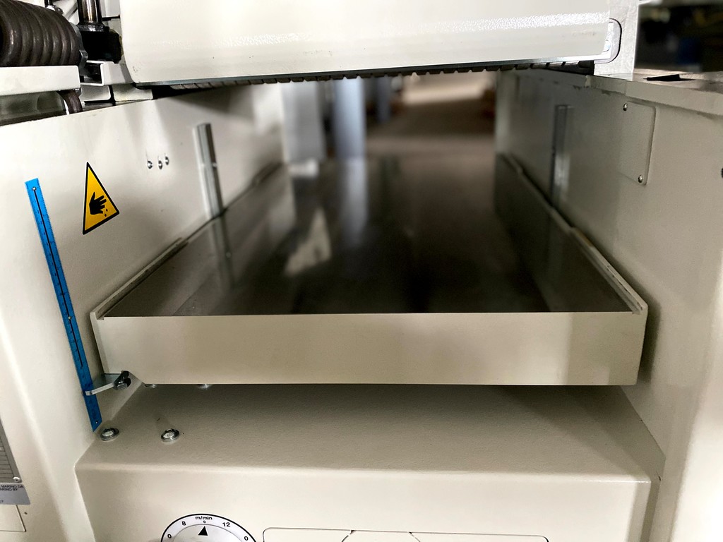 Nach hinten, gleichzeitig öffnende Abrichttische mit Zugfederunterstützung für schnelles und bequemes Umrüsten